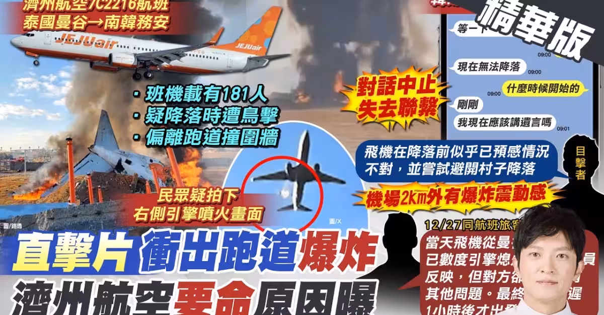 【簡至豪報新聞】南韓181人客機迫降爆炸畫面曝光 恐179人罹難! | 乘客目睹鳥卡機翼 傳訊家人"我該講遺言嗎?" 精華版 20241229 @中天電視CtiTv