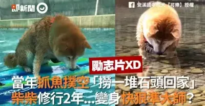 柴犬當年抓魚撲空 撈一堆石頭回家 修行2年後 變身快狠准大師?