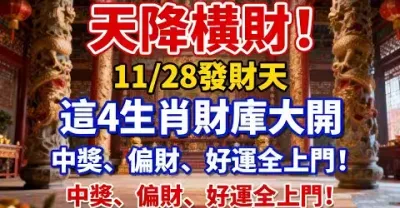 天降橫財! 11月28 發財天!這4生肖財庫大開,中獎、偏財、好運全上門!