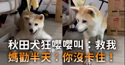 秋田犬狂嚶嚶叫:救我 媽勸半天:你沒卡住!