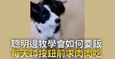 聰明邊牧學會如何要飯 每天蹲按鈕前求肉肉吃