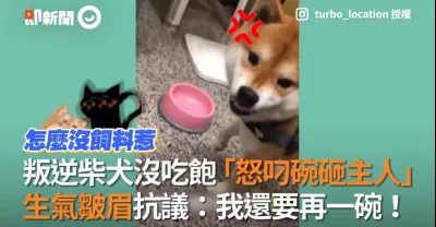 叛逆柴犬沒吃飽「怒叼碗砸主人」 生氣皺眉抗議:我沒有吃飽啦!