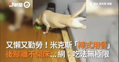 又懶又勤勞!米克斯「棒式用餐」後腳離不開床...吃法無極限