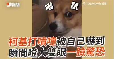 柯基打噴嚏被自己嚇到 瞬間瞪大雙眼一臉驚恐