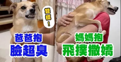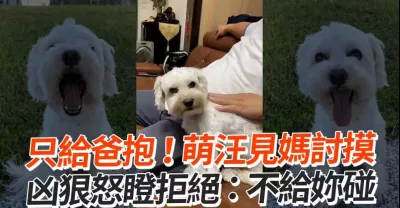 偏心狗只給爸抱!見媽討摸怒瞪拒絕XD