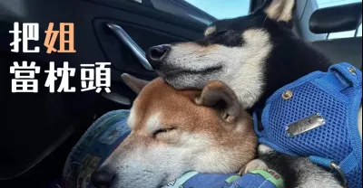 黑柴弟趴赤柴姊腦袋睡超香 爸笑:是感情好還是缺枕頭?