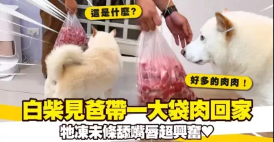 白柴見爸拿大袋肉回家🥩😍牠凍未條興奮舔嘴唇