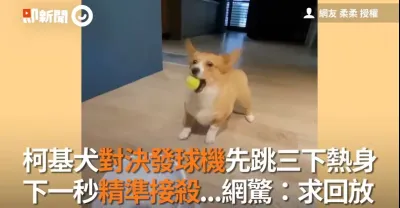 柯基犬對決發球機!先跳三下熱身 下一秒精準接殺...網驚:球回放