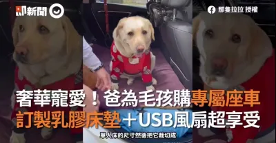 爸寵愛拉布拉多犬購買專屬座車 乳膠床墊+USB風扇超享受
