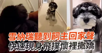 雪納瑞聽飼主回家聲🐶秒現身飛撲懷裡撒嬌❤