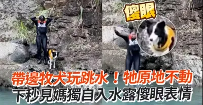 媽揪邊牧犬跳水!牠呆坐原地不動滿臉傻眼🤣