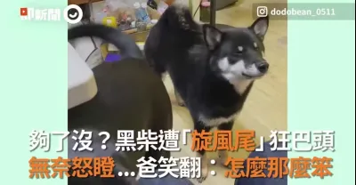 夠了沒?黑柴遭「旋風尾」狂巴頭 無奈怒瞪...爸笑翻:怎麼那麼笨