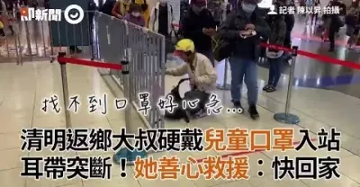 清明返鄉大叔戴兒童口罩入站...耳帶突斷!她善心救援|暖聞|愛心