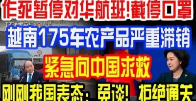 作死暫停對華航班,截停口罩,越南175車農產品嚴重滯銷,緊急向中國求救,剛剛我國表態:免談!拒絕通關!