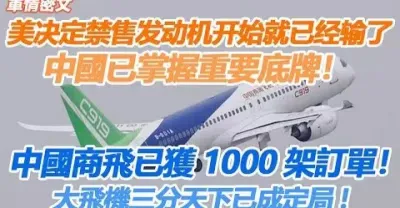 美決定禁售發動機開始就已經輸了,中國已掌握重要底牌,中國商飛獲1000架訂單,大飛機三分天下已成定局