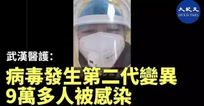 (字幕)武漢漢口一名醫護人員日前拍片跟親友報告,表示目前由於該病毒已經感染9萬人,並表示該病毒的第一代傳染機率為1:14,但最壞的消息是病毒已經發生第二代變異,傳染機率呈爆發性。