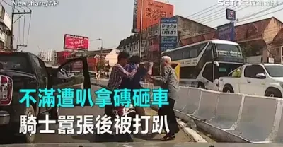 【泰國駕車起爭執的後果】不滿遭叭拿磚砸車,騎士囂張後被打趴!