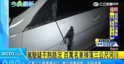 駕駛疑不熟路況 百萬名車掉落三公尺河川網:慢慢開會進河裡?