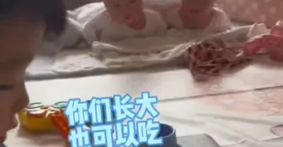 哥哥在妹妹邊上吃東西,饞得雙胞胎妹妹口水橫流!