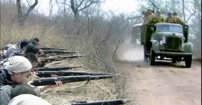 八路軍半路埋伏日軍車隊,卡車一靠近就火力全開團滅日軍,直接搶光車上軍火!