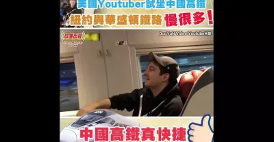 美國Youtuber試坐中國高鐵 驚嘆:紐約與華盛頓鐵路慢很多! 中國高鐵真快捷!