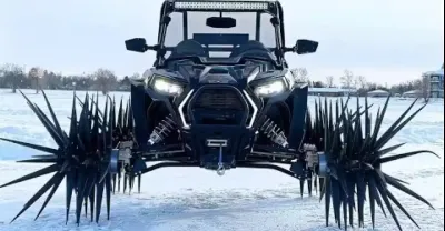 男子改裝帶刺的「雪地胎」一腳油門踩下去後,刺激的一幕發生了!