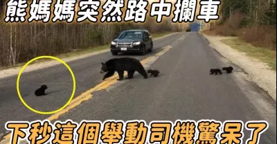 熊媽媽過馬路突然攔下一輛車,隨後這個舉動驚呆了司機......