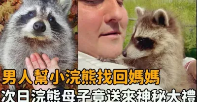 小浣熊與媽媽失散,好心男子幫其重聚,未料次日浣熊母子竟上門送上神秘大禮!