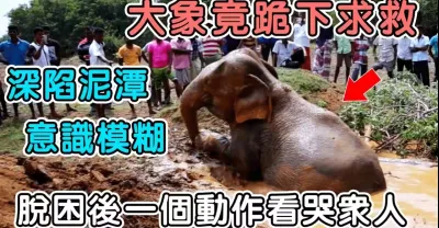 大象竟跪下求救,身陷沼澤拚死掙扎,脫困後一個舉動讓眾人淚目