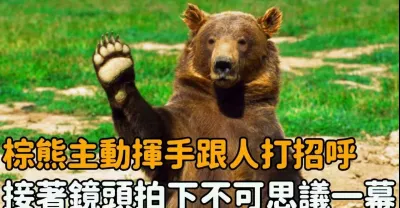 棕熊在路上突然站立,對女人不停揮手打招呼,接著鏡頭記錄下驚人一幕!