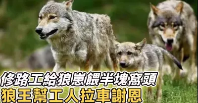 狼崽餓暈,修路工餵下半塊窩頭救活,狼王為報恩竟帶狼群幫工人做苦力。