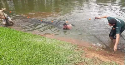 可怕!!河下游的市民對河邊出現的巨型蟒蛇感到驚訝……