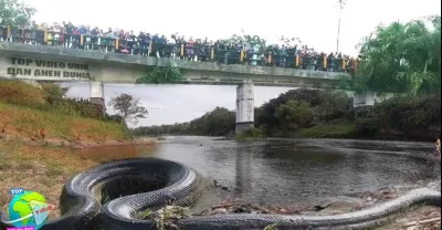 Ngeri !! Lagi Susuri Sungai Warga Dikejutkan Dengan Kemunculan Anaconda Raksasa di Tepi Sungai...