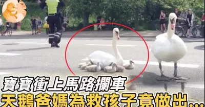天鵝寶寶衝上快車道,險些被車撞傷,天鵝爸媽急忙趕來竟做出驚人舉動!