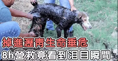 狗狗掉入瀝青生命垂危,8小時營救看哭眾人,眼角含淚:我想活下去