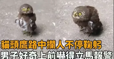 貓頭鷹幼崽路中攔人不停鞠躬,男子好奇下車查看,下秒被嚇得立馬報警#感動 #救助 #暖心 #感人 #不可思議 #奇跡