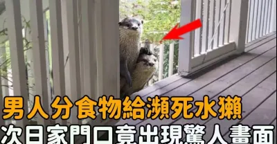 男人將食物分給瀕死水獺,次日聽見有人敲門,開門後的場景卻讓他大吃一驚...