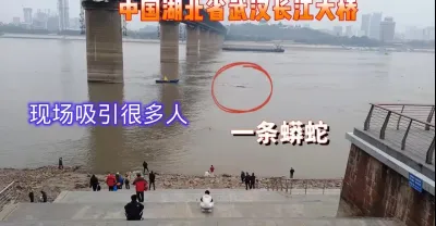 鏡頭記錄精彩瞬間,武漢長江大橋,一條「蟒蛇」從大橋下穿梭著