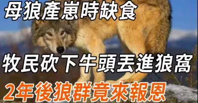 母狼產崽時缺食,老牧民砍下野牛頭丟進狼窩,2年後狼群竟來報恩