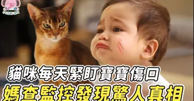 貓咪每天盯著寶寶傷口看,媽媽查看監控後發現驚人真相!