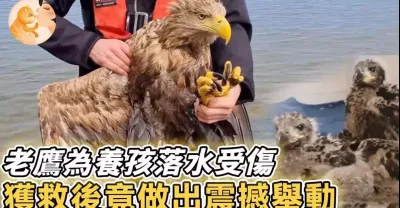 老鷹掉進深湖生命垂危,獲救後竟不願離開,好心男子才意外發現岸邊還有兩隻瀕死鷹寶寶!