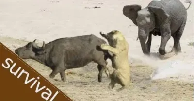 野生動物!大象從獅子襲擊中救出水牛 獅子與大象實戰 ,最不可思議!