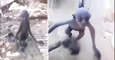 暴雨來襲,剛出生就被遺棄的小猴已無法呼吸,幸虧出現了一直狗媽媽將它救下