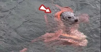 仔細一看嚇出一身冷汗,男子發現「狗狗」落水,本想上前營救!