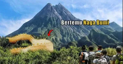 一群登山者在默拉皮火山上看到一條金鱗地龍蛇...