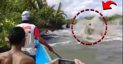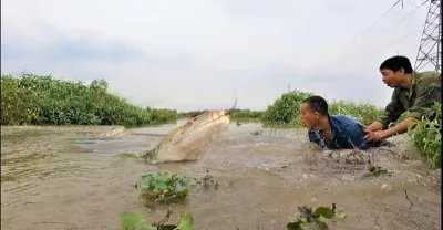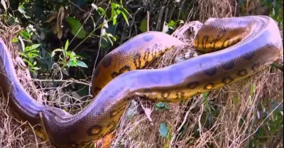 兩人在沼澤中被一條重達500公斤的巨蟒襲擊的恐怖時刻。 - 蟒蛇