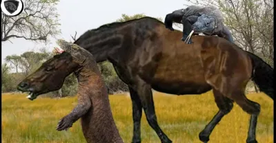 野馬在穿越科莫多領地時突然遭到科莫多巨蜥襲擊