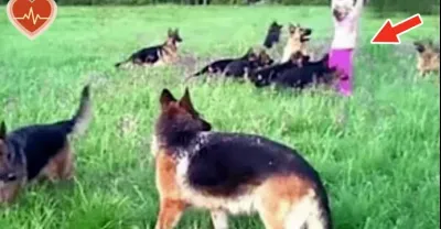 女孩上街驚險遇十四隻德牧!當她舉起手時,不可思議的事情發生了...