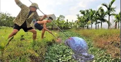 水葫蘆下驚現500公斤巨蟒-蟒蛇襲人