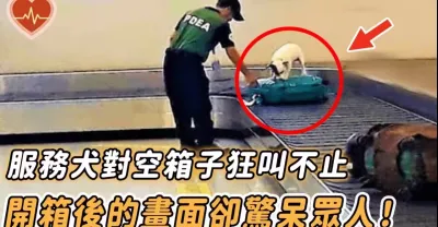 服務犬對著空箱子狂叫,工作人員攔下檢查,開箱後的畫面令人難以置信..